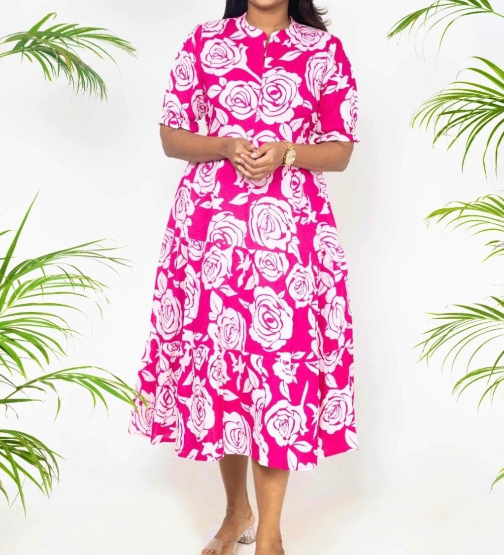 This Pink Floral Printed Cotton Midi Dress is designed for women who love effortless style and all-day comfort. Made from breathable pure cotton fabric, it keeps you cool and relaxed even during warm days.